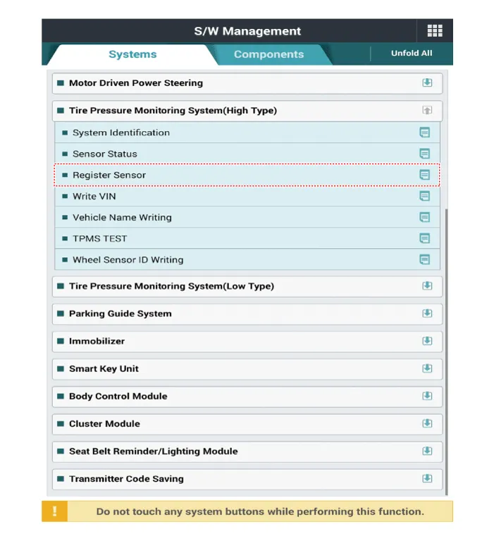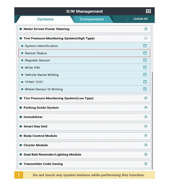 In the KDS Vehicle Type Selection menu, select "Vehicle Type" and "TPMS" System, and then opt for "OK." |