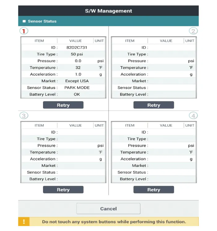 TPMS sensor is transmitted to RF signal at only specific phase (the angle of the tire) in the learning mode. |