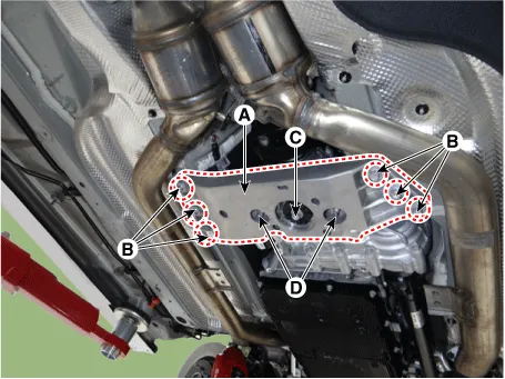 Remove the under cover. D 2.2 R VGT (Refer to Engine Mechanical System - "Engine Room Under cover") G 2.0 T-GDI THETA II (Refer to Engine Mechanical System - "Engine Room Under cover") G 3.3 T-GDI LAMBDA II (Refer to Engine Mechanical System - "Engine Room Under cover") |