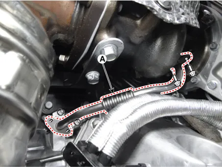 Remove the warm-up catalytic converter (WCC) stay (A).
