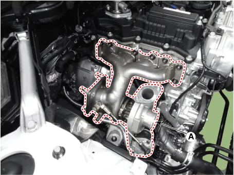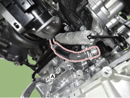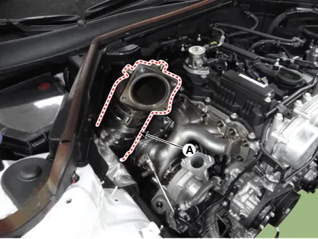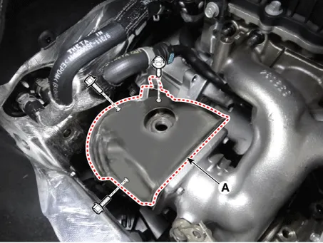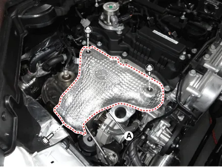 Remove the warm-up catalytic converter (WCC) heat protector (A).
