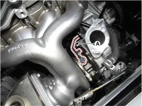 If the breather hose is bent or clogged, the internal pressure in the engine increases then engine oil is not supplied smoothly to the turbocharger. So it may cause damage of the turbocharger and oil leaks. If the cause of the problem is detected, replace the breather hose or the related parts with new ones. |