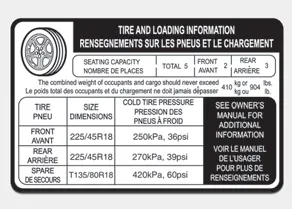 The label located on the driver's door sill gives the original tire size, cold tire pressures recommended for your vehicle, the number of people that can be in your vehicle and vehicle capacity weight.