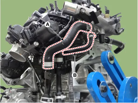 Disconnect the oil cooler hose (A) and electric throttle body control (ETC) module water hose (B).