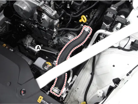 Disconnect the radiator upper hose (A).