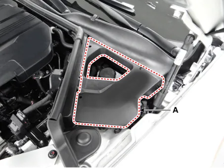 Remove the LH hood sealing cover (A).