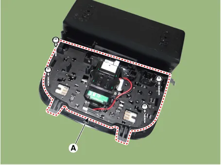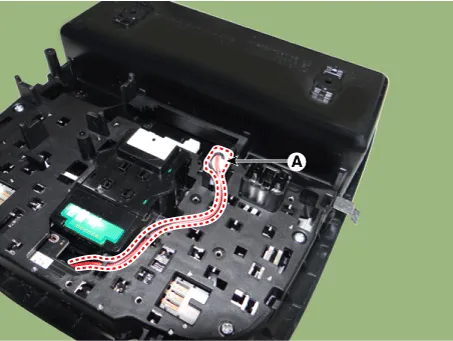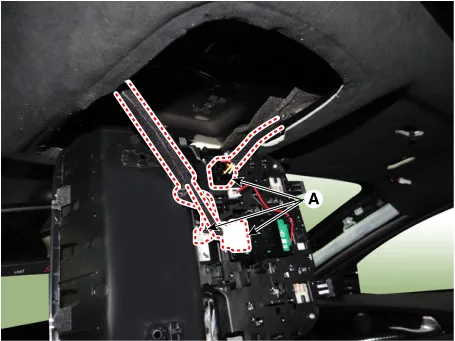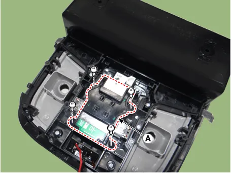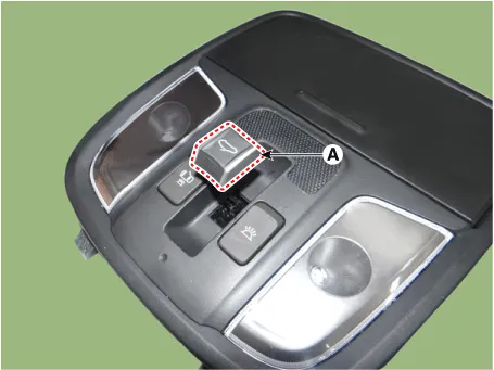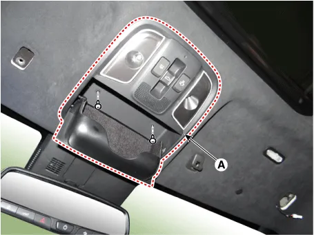 Remove the overhead console lamp (A) after loosening the mounting screws.