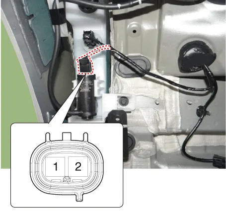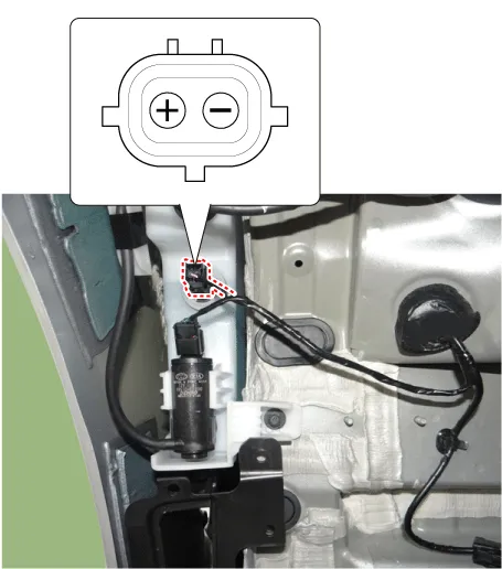 Connect the front washer motor connector. |