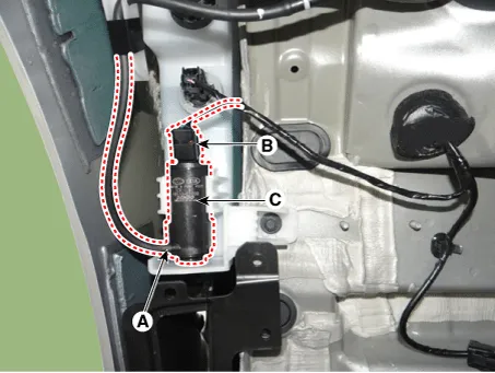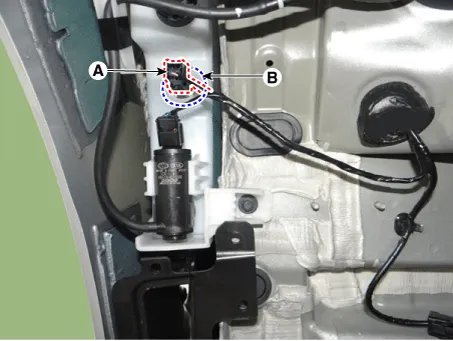 Disconnect the washer hose (A) and washer motor connector (B). |