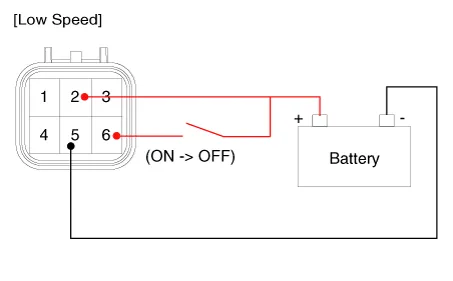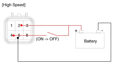 Attach the positive (+) lead from the battery to terminal 2 and the negative (-) lead to terminal 5.
