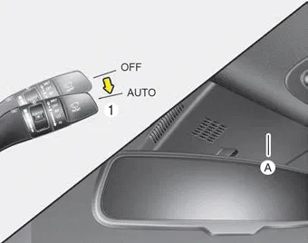 The rain sensor (A) located on the upper end of the windshield glass senses the amount of rainfall and controls the wiping cycle for the proper interval. The more it rains, the faster the wiper operates. When the rain stops, the wiper stops.