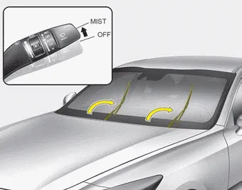 After turning off the engine, move the wiper switch to the single wiping (MIST) position within 20 seconds and hold the switch more than 2 seconds until the wiper blade is in the fully up position.